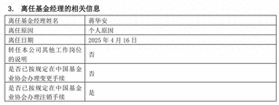 近日,工银瑞信基金公告称,蒋华安因个人原因于4月16日离任工银养老2035(FOF)、工银养老2040三年持有混合发起式、工银养老2045三年持有混合发起式等多只基金的基金经理。